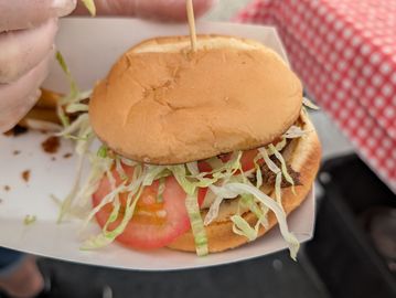 1/4 Patty, Brioche Bun, Awesome Sauce, Shredded Lettuce, Tomato, Onion, Pickle