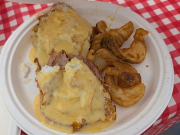 English Muffin, Ham, 2 eggs, Hollandaise, Sidewinder Potatoes