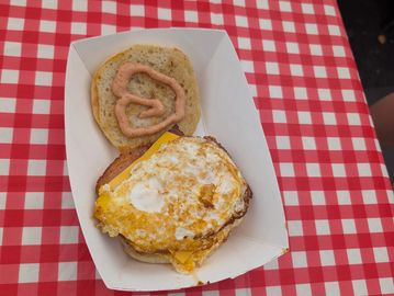Honey Cured Bacon, 1 Egg, American Cheese, Special Sauce, Brioche Bun