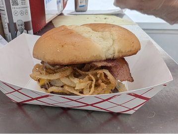 1/4 lb Patty, Brioche Bun, Griddled Onions, Mustard, American Cheese, Awesome Sauce